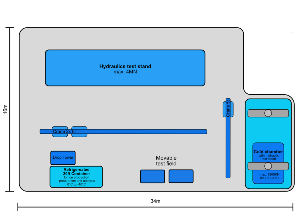 The laboratory of the institute for ship structural design and analysis of the Hamburg University of Technology (TUHH) has several testing units for ice.